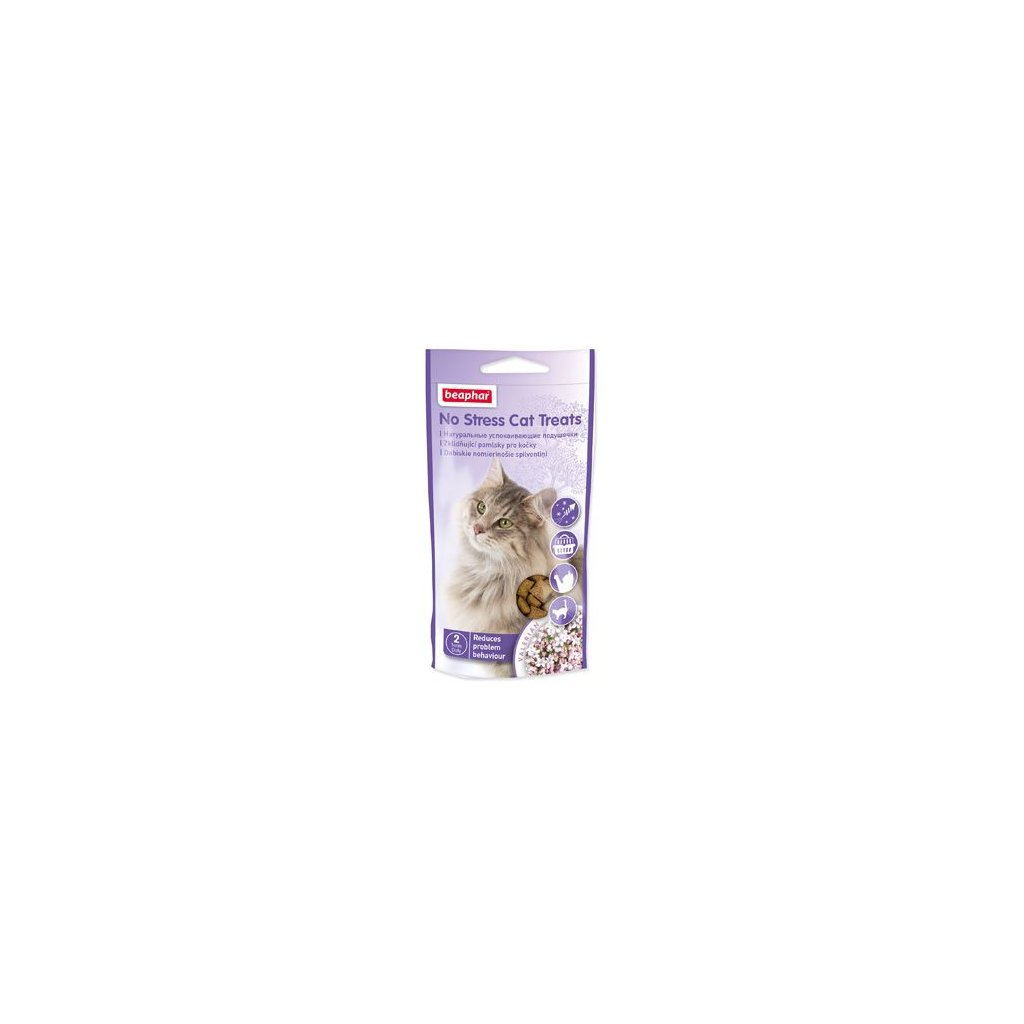 Tento přírodní uklidňující přípravek obsahuje léčivé rostliny (kozlík lékařský, meduňka, chmel). No Stress Cat Treats se doporučují kočkám všech plemen i věkových kategorií pro uklidnění a odstranění stresu při nadměrném mňoukání, sprejování, ničení nábytku, škrábáním, bouřkách, ohňostrojích ....Krmný návod: optimálně podávejte 2 ks na den. Nedoporučujeme překračovat množství 6 ks za den. Účinek se projeví za 1,5 hodiny po požití. Aplikaci je možno opakovat po 2,5 hodinách. Funkční pamlsky je možno podávat přímo z ruky nebo přidávat do krmiva. Doporučujeme podávat 1,5 hodiny před uskutečněním předpokládané stresové události.