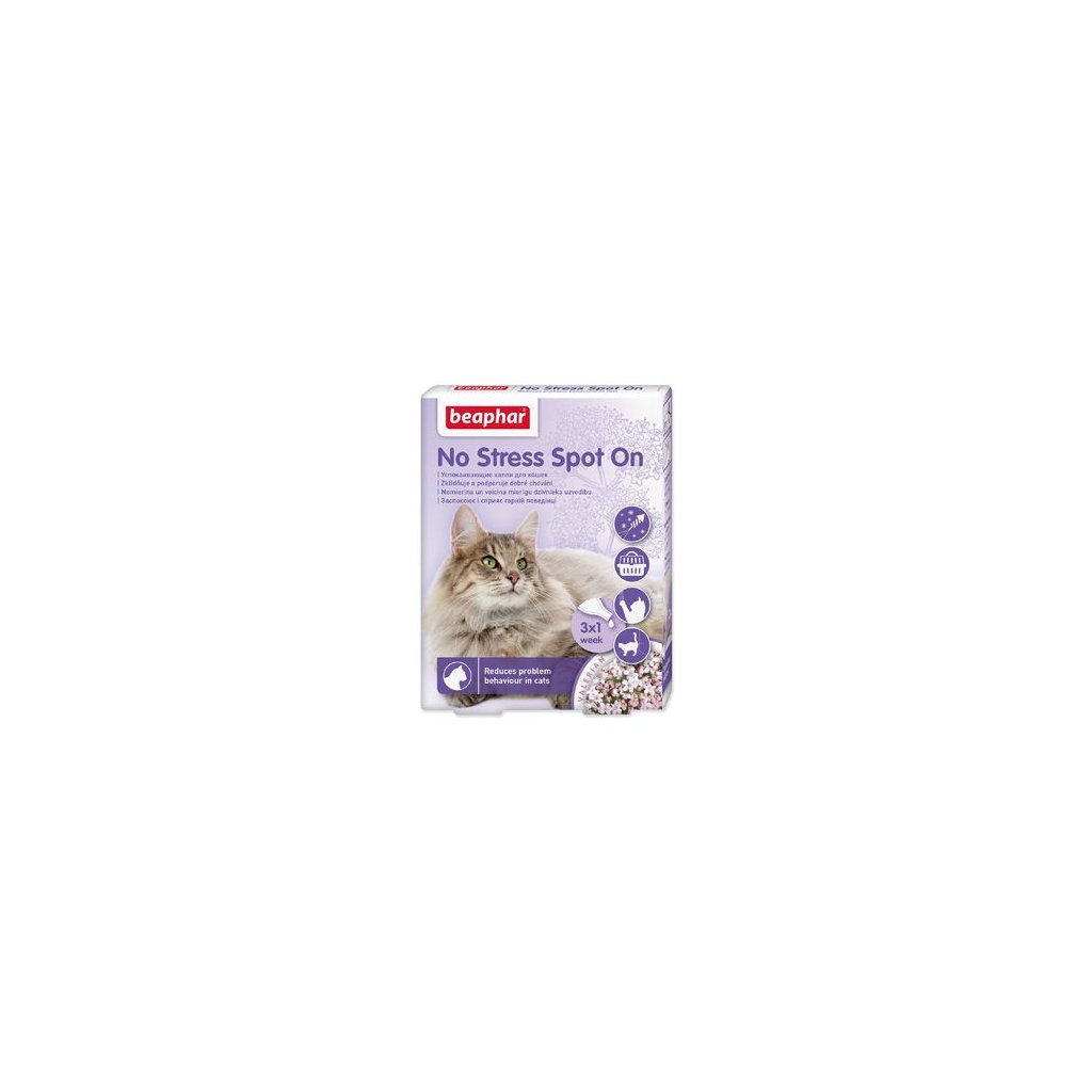 Přípravek ke snížení stresu a zklidnění koček.Beaphar No Stress Spot On je vhodný pro všechna plemena a věkové kategorie koček. Snižuje stres u koček a udržuje je v klidu díky zklidňujícímu účinku extraktu kozlíku lékařského, který je obsažen v mikrokapslích. Ty fungují na principu pomalého uvollňování a dlouhodobého účinku. Používá se v případě nadměrného mňoukání nebo prskání v důsledku odloučení, návštěvy veterináře, při cestování, bouřce či v případě destruktivního nebo nežádoucího územního chování.
