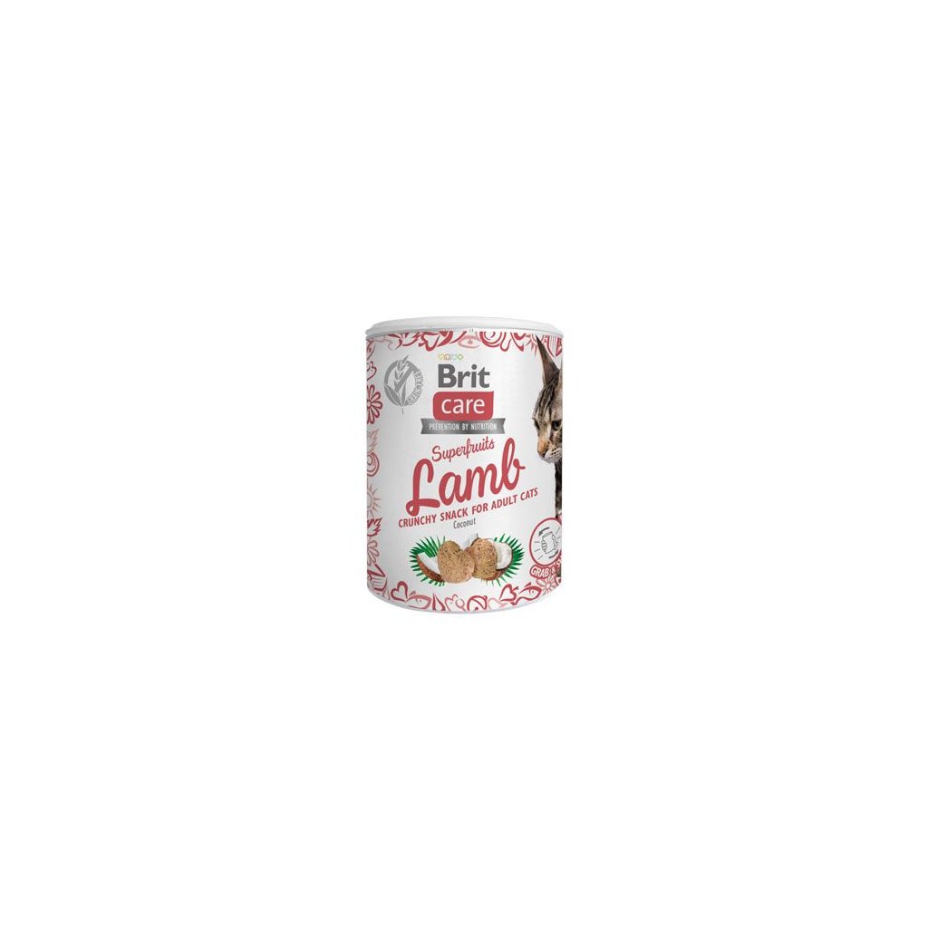 Doplňkové krmivo bez obilovin pro dospělé kočky. Křupavý pamlsek s jehněčím a se „SUPERFRUITS“ – s kokosem. Chrastící křupavé pamlsky kočku přilákají a strhnou ke společné zábavě.Složení: