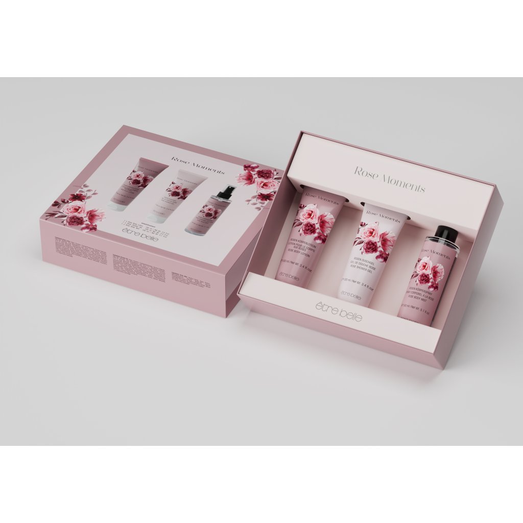 Dárkový set Rose Moments je smyslným zážitkem pro tělo i duši. Sprchový gel, tělové mléko a tělový sprej hýčkají pokožku jemnou vůní vzácných růží a dodávají každodenní péči dotek luxusu. Obohaceno o bio olivový olej a extrakt z aloe pro intenzivní hydrataci a pružnost.