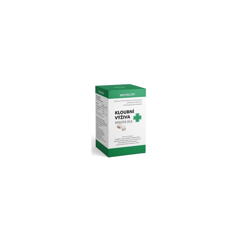 Doplněk stravy kloubní výživa dvojitá síla obsahuje unikátní kolagenové kostičky s příjemnou jahodovou příchutí. Kostičku je nutné rozkousat bez zapití. Je tak zaručeno mnohem rychlejší vstřebání aktivních látek, a navíc je zaručen styk sliznice s nativním kolagenem typu II. Navíc je tento způsob podání velmi šetrný k žaludku, což je důležité zejména při dlouhodobém podávání až několika měsíců. Kostičku můžete užít také kdykoliv a kdekoliv, aniž byste museli mít k dispozici tekutinu na zapití klasické tablety nebo kapsle.Kolagen typu I je přítomný ve šlachách, vazech a kostech, kde vytváří poměrně silná vlákna. Ta se dále spojují do objemných vláknitých svazků (princip lana), protože vazy a šlachy musí vydržet poměrně silný tlak. Kolagen typ I je nejrozšířenějším typem kolagenu. Vyskytuje se také v pokožce, má proto významný vliv na její vzhled a kvalitu. V doplňku stravy je obsažen v hydrolyzované formě, která je maximálně dostupná pro organismus